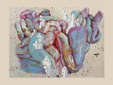 L’exposition Habiter de Gilles Barbier rassemble une quarantaine d’œuvres. Même si une grande partie d’entre elles ont été produites pour l’occasion, elle intègre dans son parcours des pièces existantes, dont les plus anciennes datent de 1992. Certaines séries, les Pions, Habiter la Peinture, accompagnent l’artiste depuis ses débuts et constituent l’ossature de sa pratique. D’autres familles d’œuvres, plus tardives, Habiter la Viande, Stasis, Naufrages, éclairent ces gestes initiaux en les amplifiant ou en en déplaçant les enjeux.