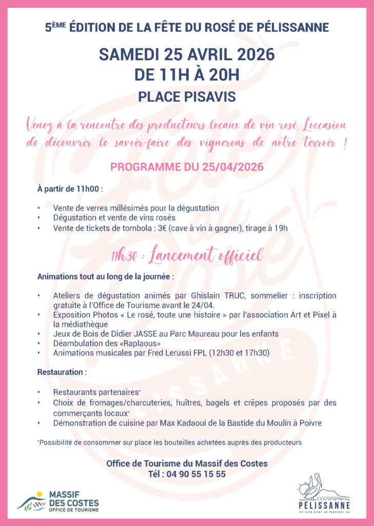 Pensez à acheter votre verre collector « Fête du Rosé » (3€) en prévente à l’Office de Tourisme mais aussi le jour J.