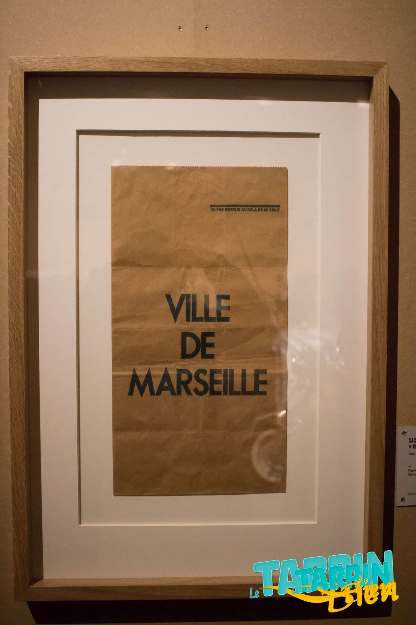 Dans la salle qui suit, on se retrouve face a des murs de sacs plastiques sous vitre qui placent, à mon avis, le déchet au rang d’oeuvre d’art.