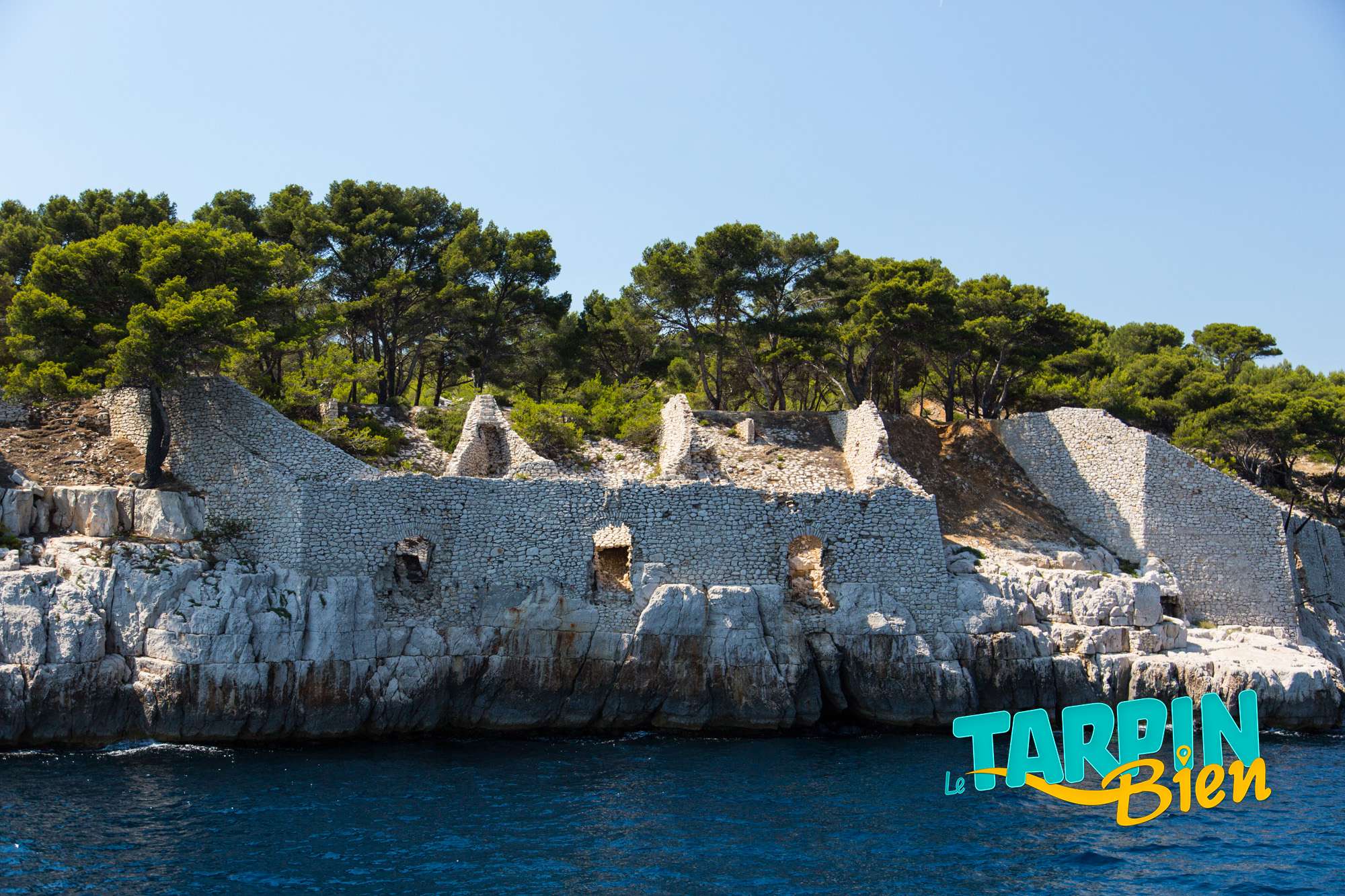 En effet l’ancienne carrière de pierres calcaires (afin de fabriquer de la chaux dans les années 1900 à 1981) Solvay a bien défiguré la paysage : les falaises et les vieilles trémies (gros entonnoirs) au bord de l’eau en sont les vestiges. En effet le calcaire était extrait à la dynamite puis concassé pour pouvoir être chargé sur les bateaux qui attendaient devant les trémies. Ainsi, mieux vaut prolonger la balade jusqu’à la pointe Cacau.