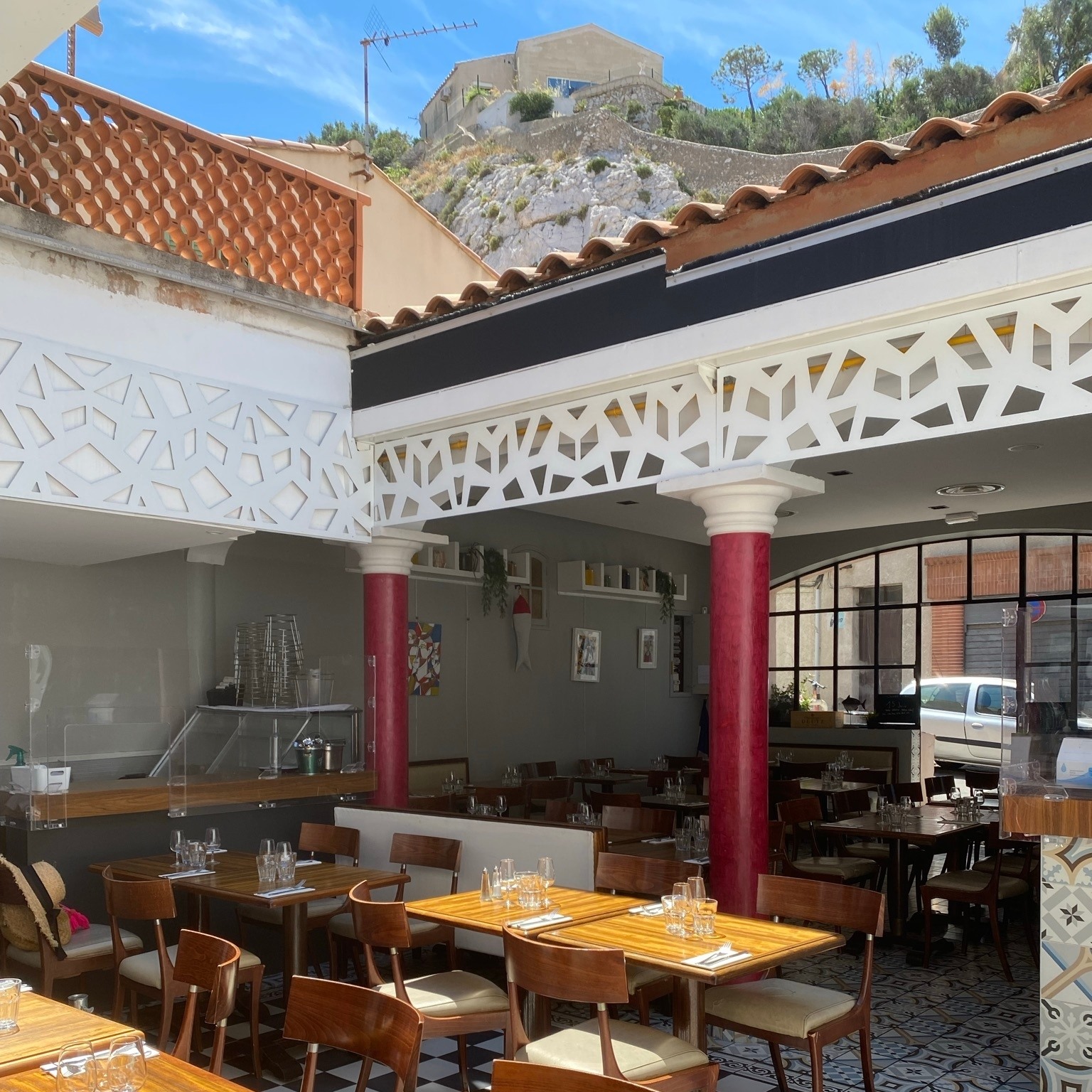 Evidement vous êtes au coeur du Vallon des Auffes, deuxième lieu le plus visité de Marseille après la Bonne Mère, et l’ambiance s’en ressent, à l’avant cour vous êtes nos invités.