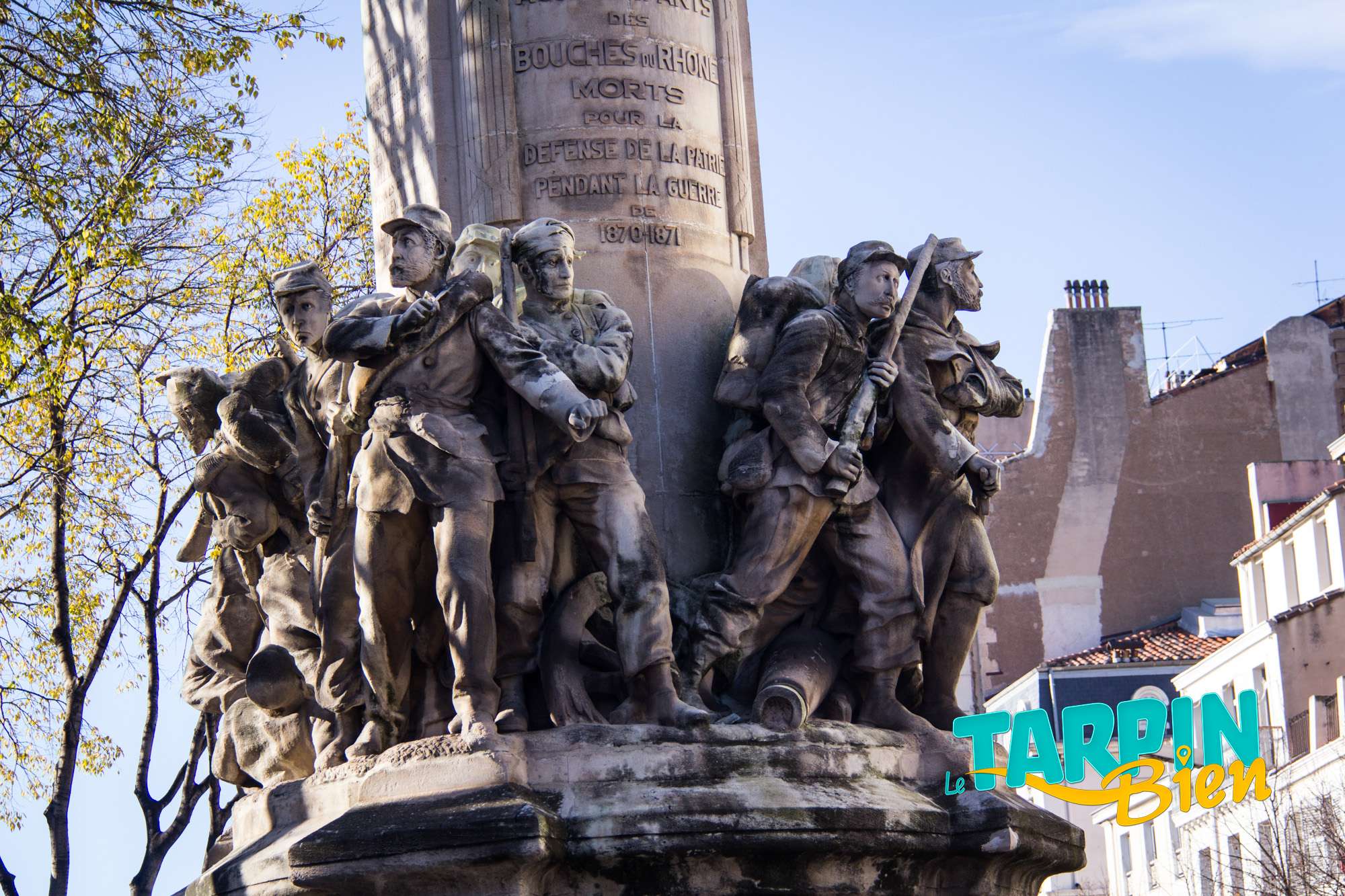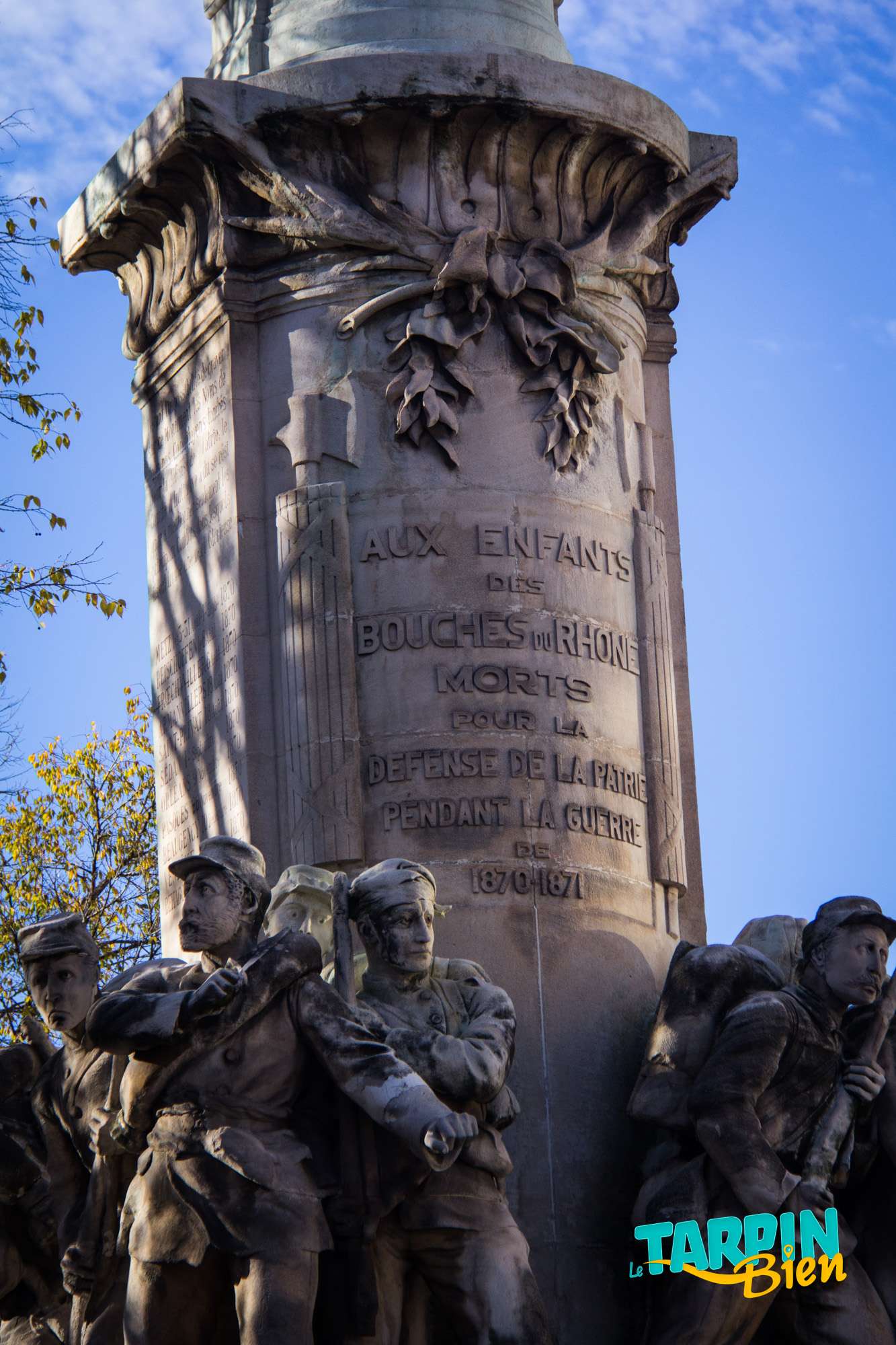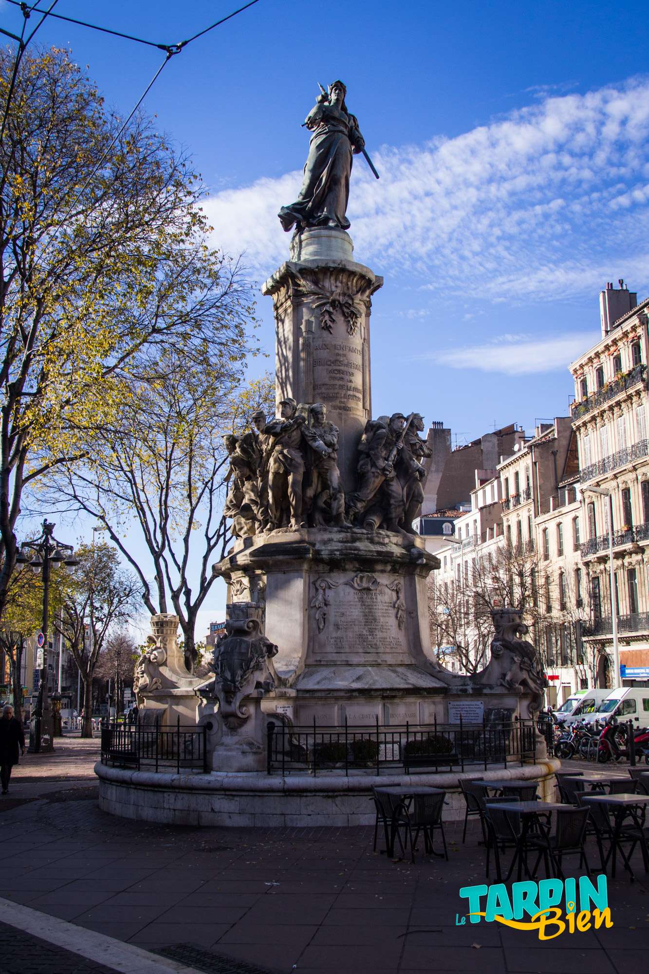164 la Canebière 13001 MarseilleSitué en haut de la Canebière (anciennement appelée le « quinconce des allées de Meilhan ») en face de l’église Saint-Vincent de Paul, le Monument des mobiles commémore les mille soldats de la garde mobile, qui furent mobilisés par le gouvernement durant la guerre franco-allemande de 1870-1871. C’est une œuvre imposante et très travaillée dont le pied, sculpté en pierre par Jean Turcan en 1893, représente quatre groupes de soldats armés sous le glaive nu de la France, imposant bronze sculpté par Constant Roux au sommet du monument.