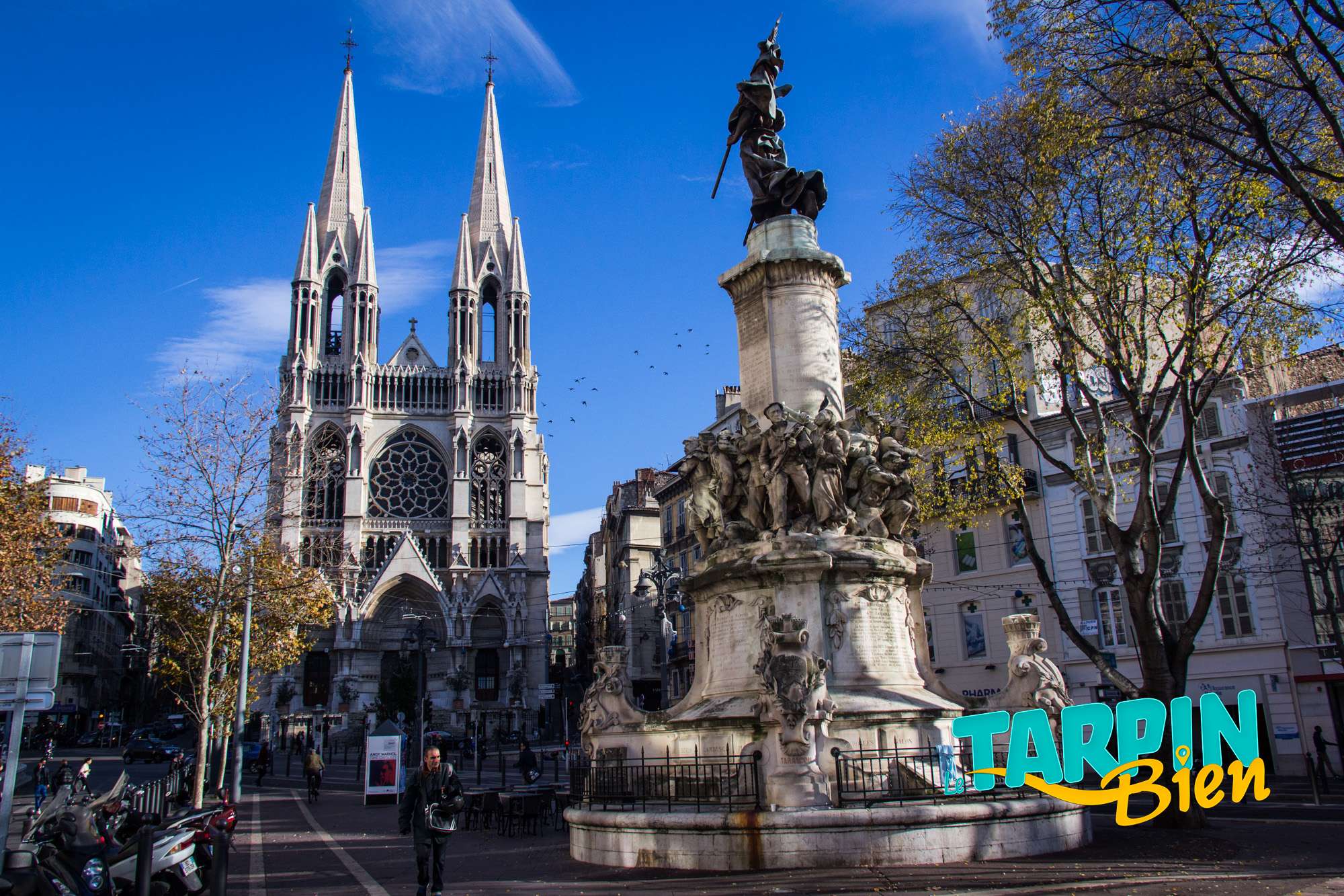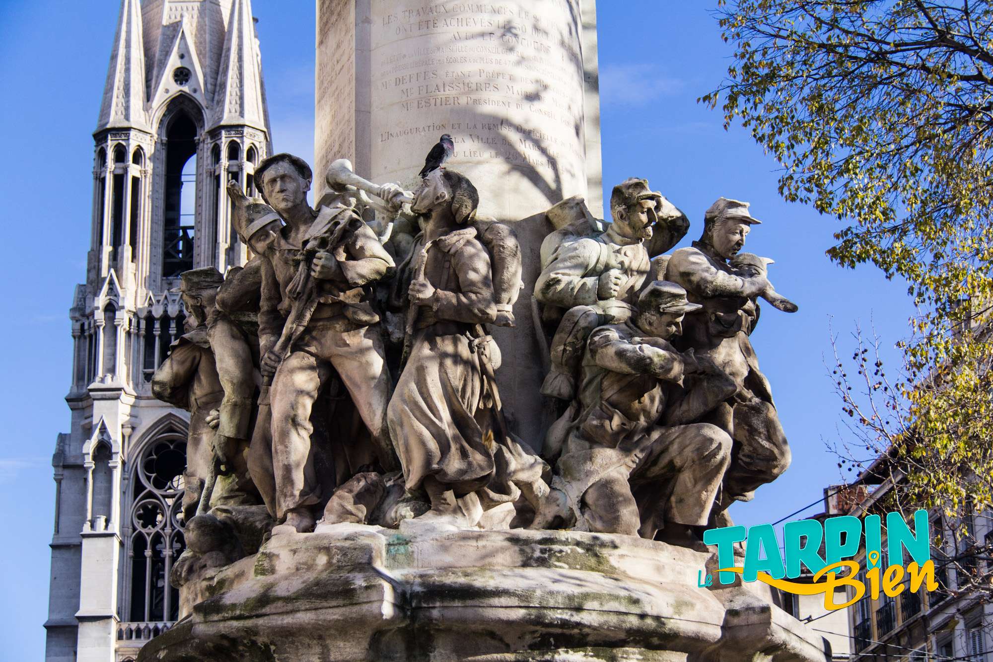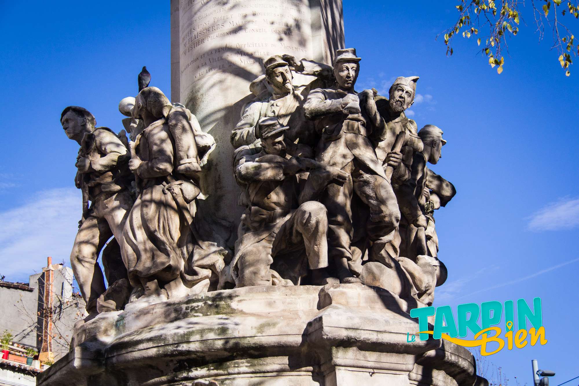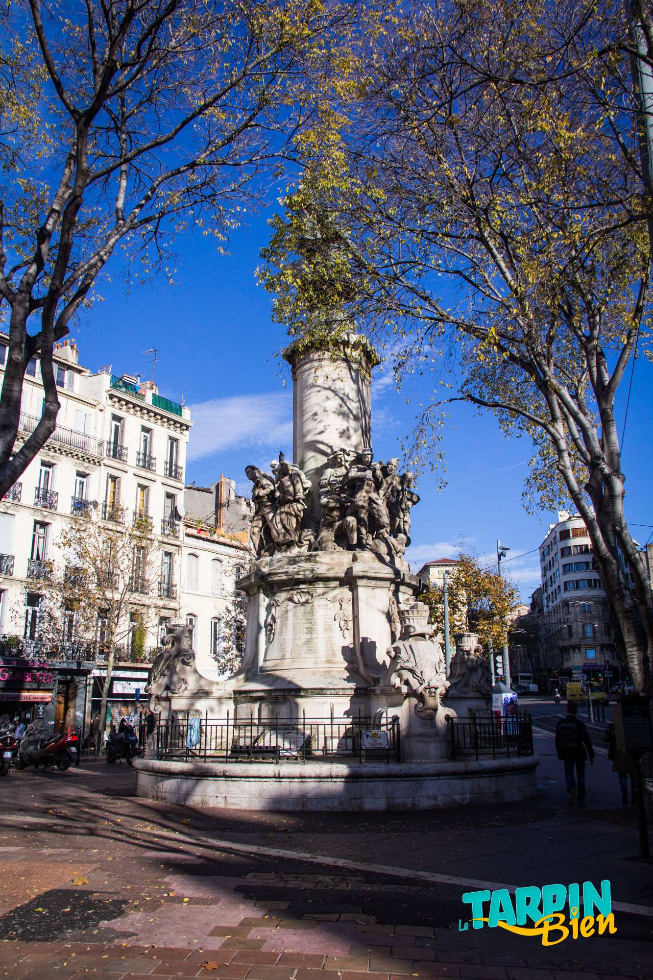 164 la Canebière 13001 MarseilleSitué en haut de la Canebière (anciennement appelée le « quinconce des allées de Meilhan ») en face de l’église Saint-Vincent de Paul, le Monument des mobiles commémore les mille soldats de la garde mobile, qui furent mobilisés par le gouvernement durant la guerre franco-allemande de 1870-1871. C’est une œuvre imposante et très travaillée dont le pied, sculpté en pierre par Jean Turcan en 1893, représente quatre groupes de soldats armés sous le glaive nu de la France, imposant bronze sculpté par Constant Roux au sommet du monument.