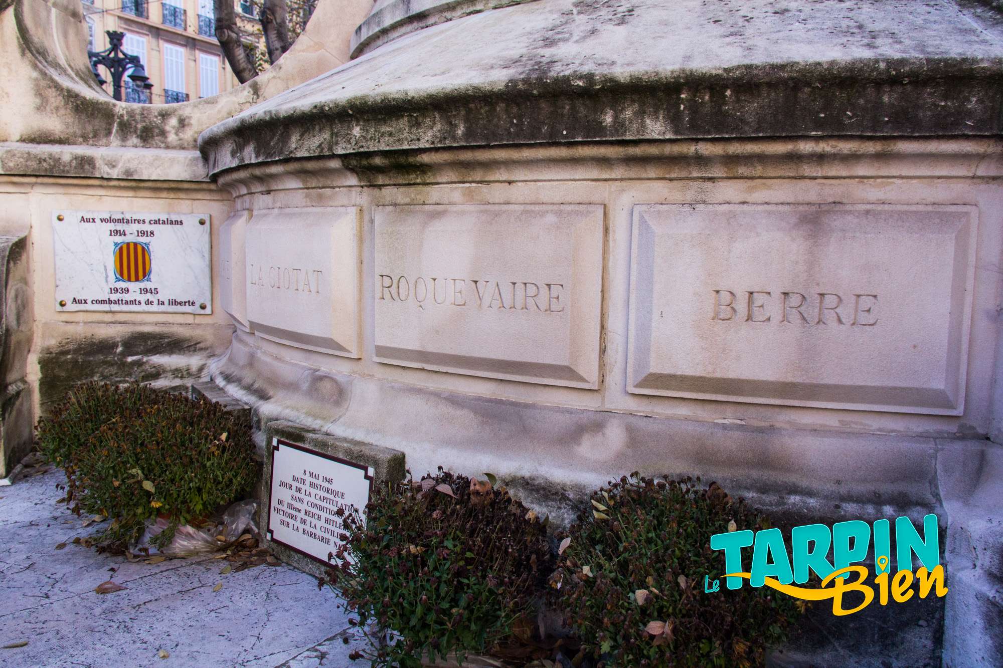 A la base de la composition quatre blasons illustrent les villes de Marseille, Aix, Arles et Tarascon accompagnés des noms des chefs-lieux.
