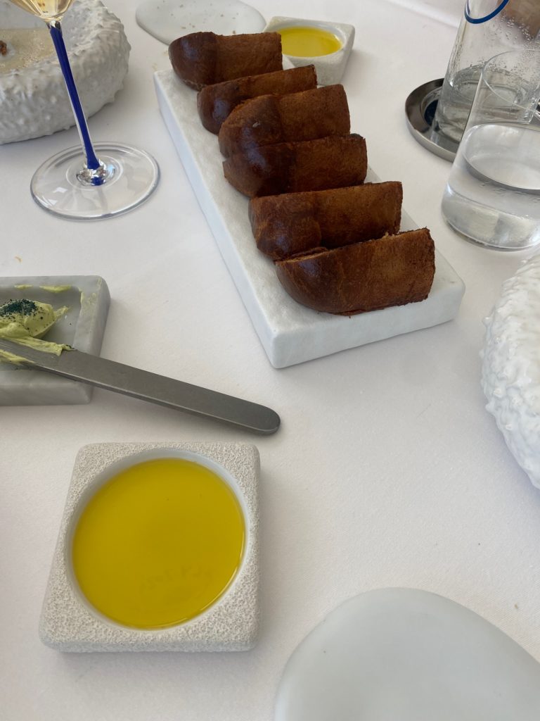 Au sein d’un hôtel qui domine le port de Carry-le-Rouet, ce restaurant jouit d’un panorama imprenable sur la mer et les îles du Frioul. Derrière un joli bar en pierre de lave émaillée, on jette l’ancre dans un décor marin épuré. Pourvu d’un sérieux pedigree (La Villa Madie, Sylvestre Wahid), le jeune chef Ilane Tinchant met en scène la Méditerranée avec une maturité étonnante, dans un menu unique en 6 ou 8 escales mêlant avec finesse notes iodées et végétales : seiche en textures, confite dans son encre et nuage d’ail (son plat signature) ; saint-pierre grillé, raisin iodé et sucs infusés aux feuilles de figuier… Une table avec les yeux sur la mer, en terrasse comme dans l’assiette.